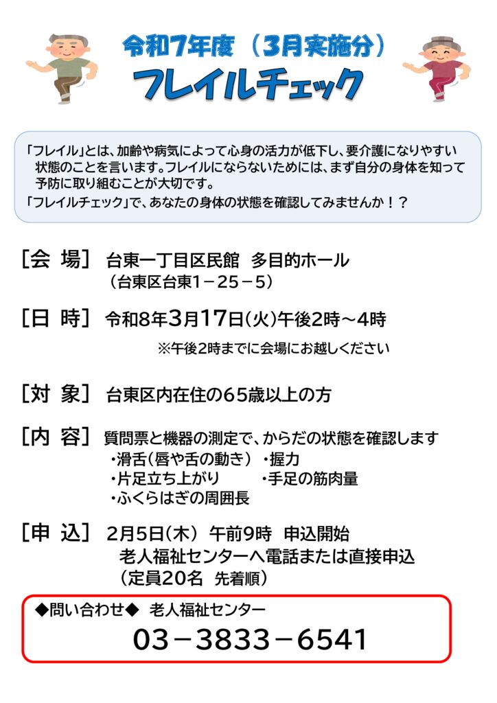 フレイルチェック(台東一丁目区民館)開催のお知らせ 3月