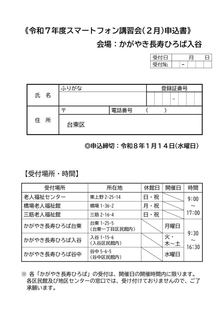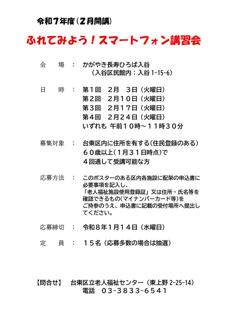 令和7年度スマートフォン講習会(2月開講・入谷)受講者募集