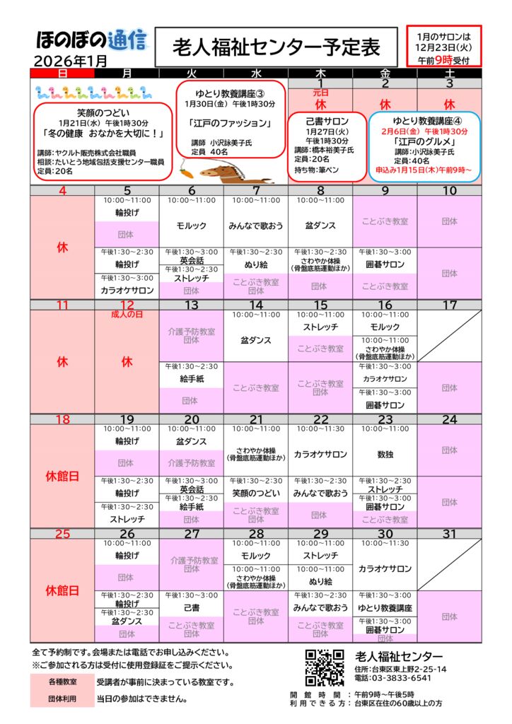 老人福祉センター・老人福祉館・うえの高齢者在宅サービスセンターは、
