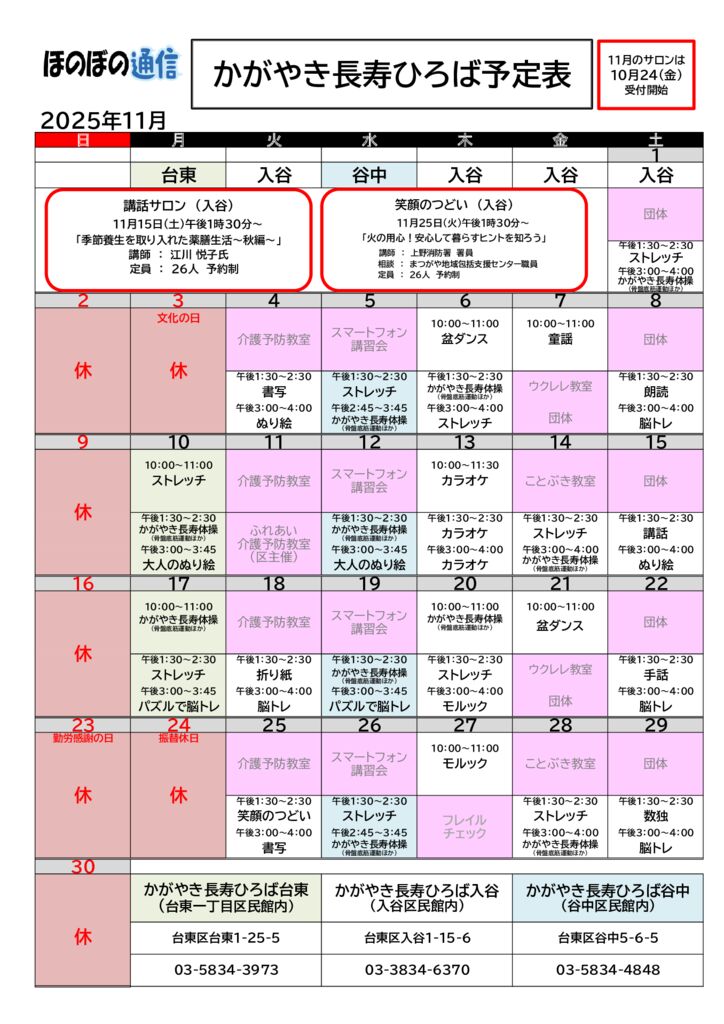 ほのぼの通信 11月号